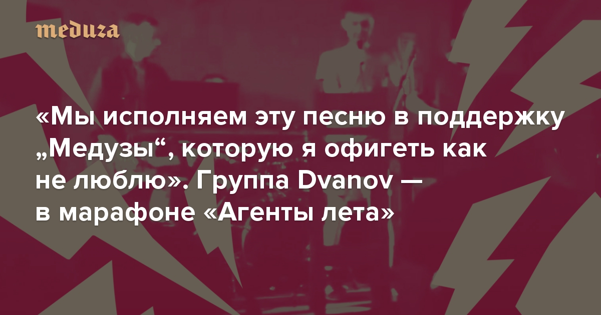 «Мы исполняем эту песню в поддержку „Медузы“, которую я офигеть как не люблю» Группа Dvanov — в марафоне «Агенты лета»