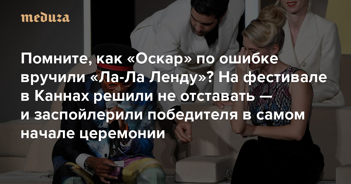 Помните, как «Оскар» по ошибке вручили «Ла-Ла Ленду»? На фестивале в Каннах решили не отставать — и заспойлерили победителя в самом начале церемонии