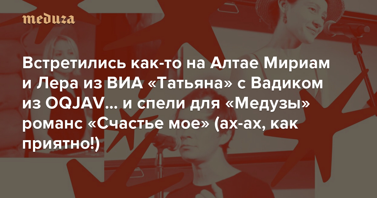 Встретились как-то на Алтае Мириам и Лера из ВИА «Татьяна» с Вадиком из OQJAV… и спели для «Медузы» романс «Счастье мое» (ах-ах, как приятно!)