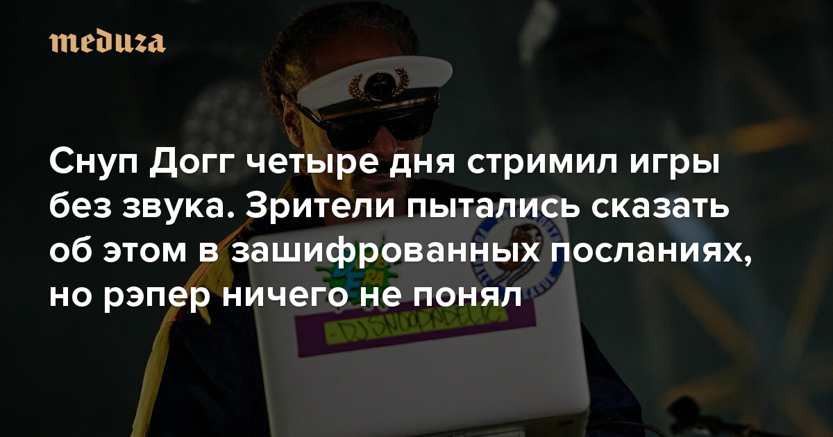 Рэпер Снуп Догг четыре дня подряд стримил игры без звука — и даже не знал об этом. Зрители пытались указать музыканту на технические неполадки, но тот совершенно не понимал, чего от него хотят. Скорее всего потому, что Снуп Догг ограничил комментарии в чате трансляции.