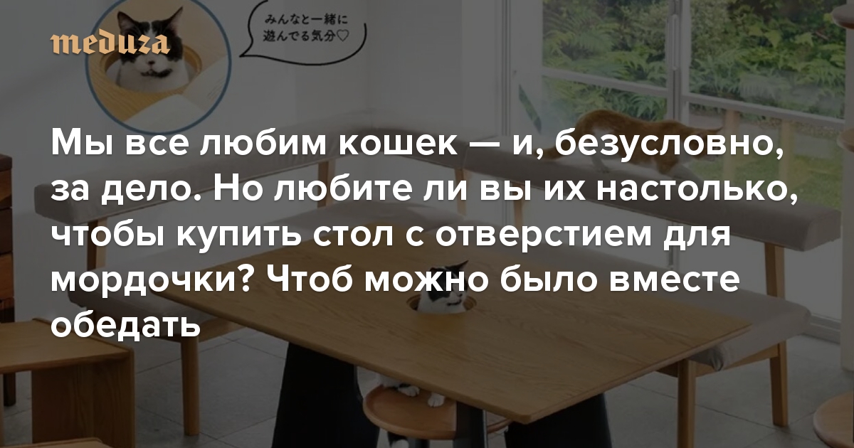 Мы все любим кошек — и, безусловно, за дело. Но любите ли вы их настолько, чтобы купить стол с отверстием для мордочки? Чтоб можно было вместе обедать