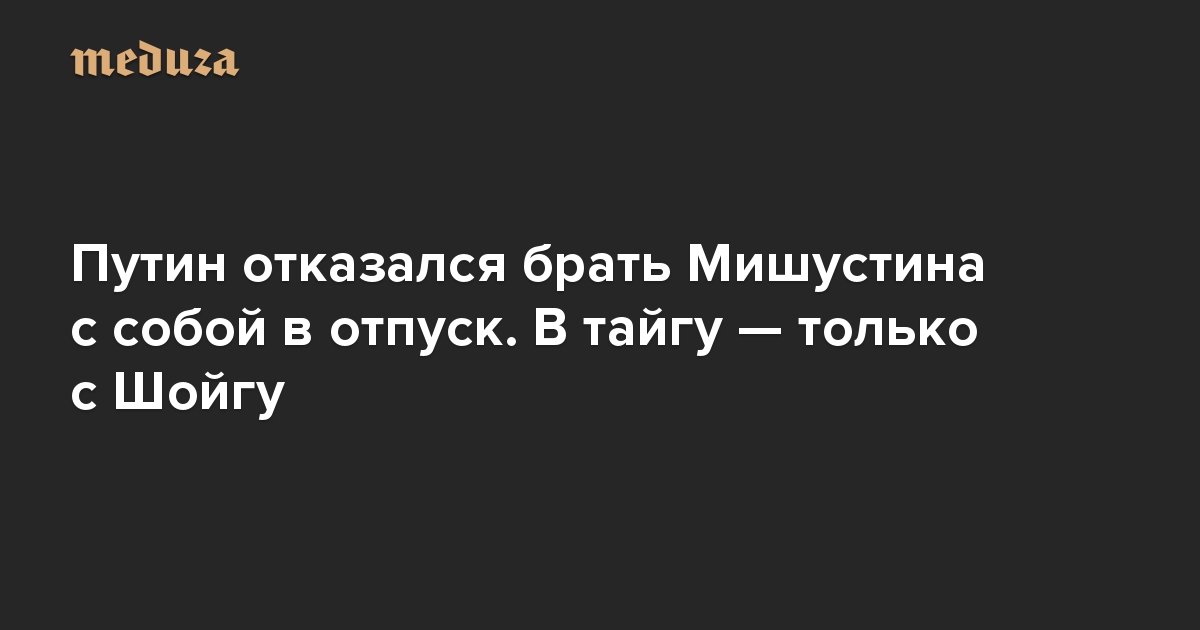 Владимир Путин дважды за год съездил в тайгу вместе с министром обороны Сергеем Шойгу. Ростуризм даже объявил о создании тематического маршрута по местам отдыха президента, объяснив это повышенным интересом к региону со стороны российских граждан. Тем не менее в воздухе повис вопрос: почему Путин все время берет с собой Шойгу, но не премьер-министра Михаила Мишустина?
