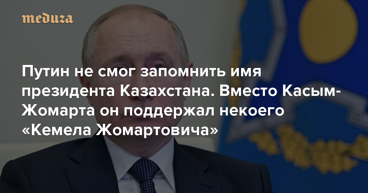 Владимир Путин во время онлайн-заседания ОДКБ выразил поддержку президенту Казахстана — правда, какому-то не тому. Вместо Токаева Касым-Жомарта Кемелевича, обратившегося к ОДКБ за помощью в связи с протестами в стране, президент России посочувствовал некому «Кемелу Жомартовичу». «Кемел», по словам Путина, столкнулся с «беспрецедентным вызовом безопасности [Казахстана]».