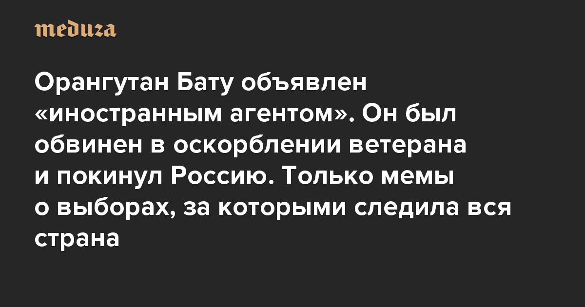 Орангутан Бату объявлен «иностранным агентом». Он был обвинен в оскорблении ветерана и покинул Россию Только мемы — о выборах в Новосибирске, за которыми следила вся страна