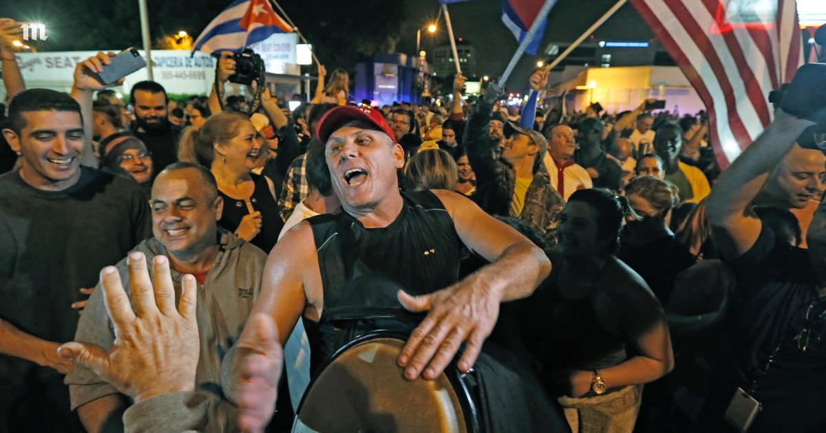 Американские кубинцы встречают известие о смерти Фиделя Кастро. Фотография