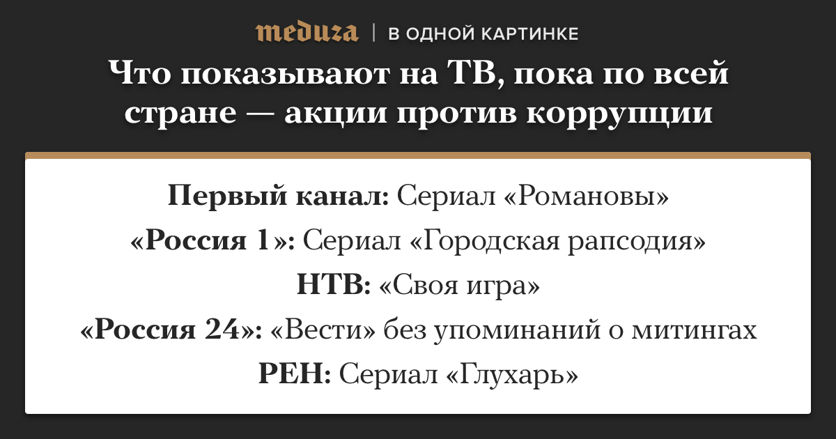 Что показывали на федеральных каналах, пока по всей стране проходили акции против коррупции
