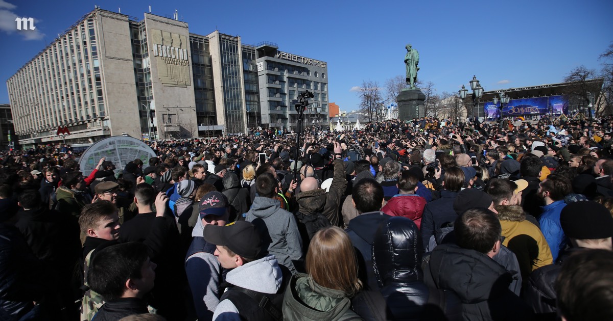 Участники протестной акции в Москве, поводом для которой стало расследование Фонда борьбы с коррупцией о «тайной империи» Дмитрия Медведева. На фото Пушкинская площадь. Массовые акции протеста проходят не только в Москве, но и в других регионах России.