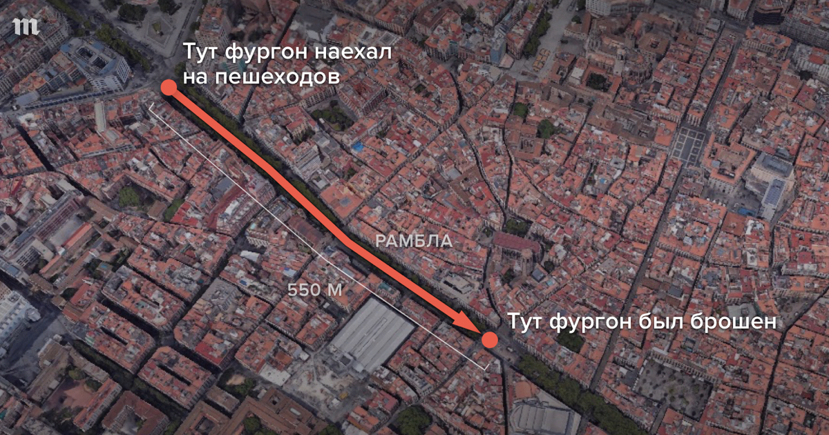 Как действовал террорист (или террористы) в Барселоне. Карта