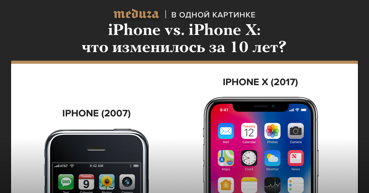 Разница между самым первым айфоном и iPhone X. В одной картинке