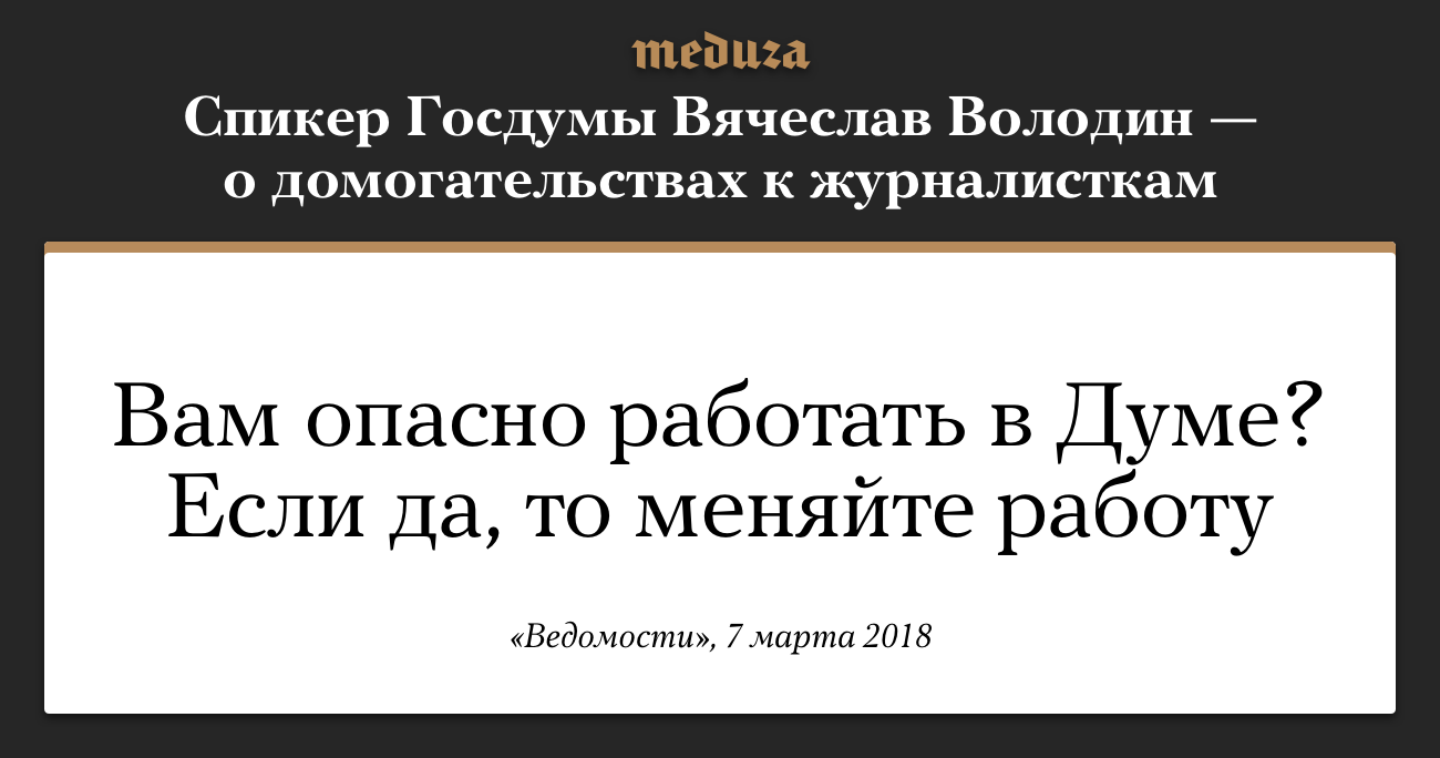 Спикер Госдумы Вячеслав Володин — о домогательствах к журналисткам. Цитата