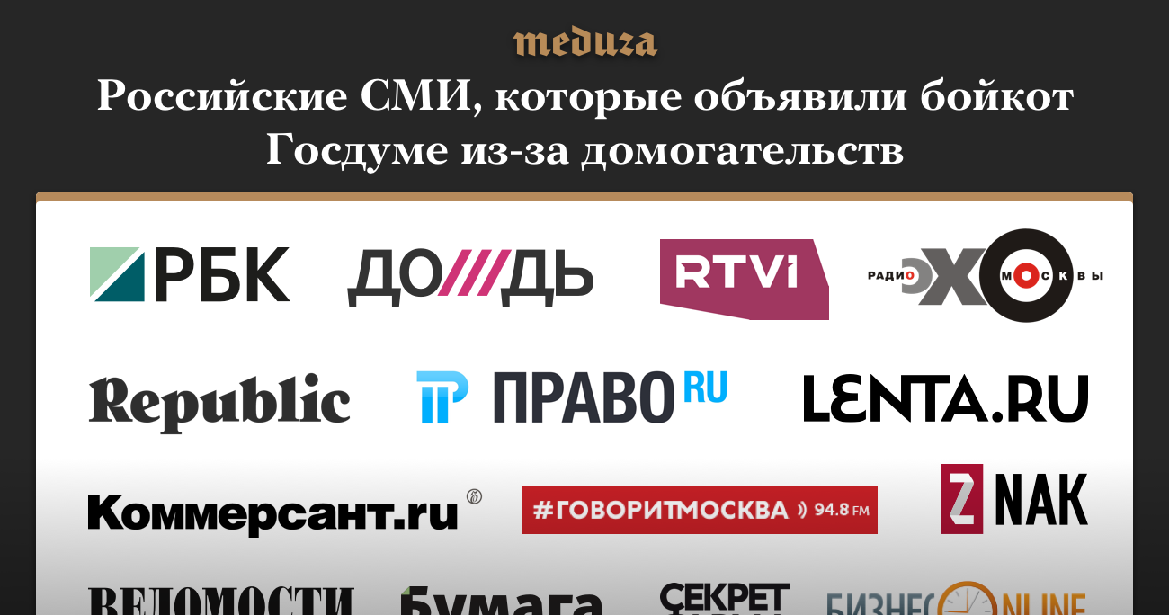 Какие российские СМИ объявили бойкот Госдуме из-за домогательств? В одной картинке Список обновляется
