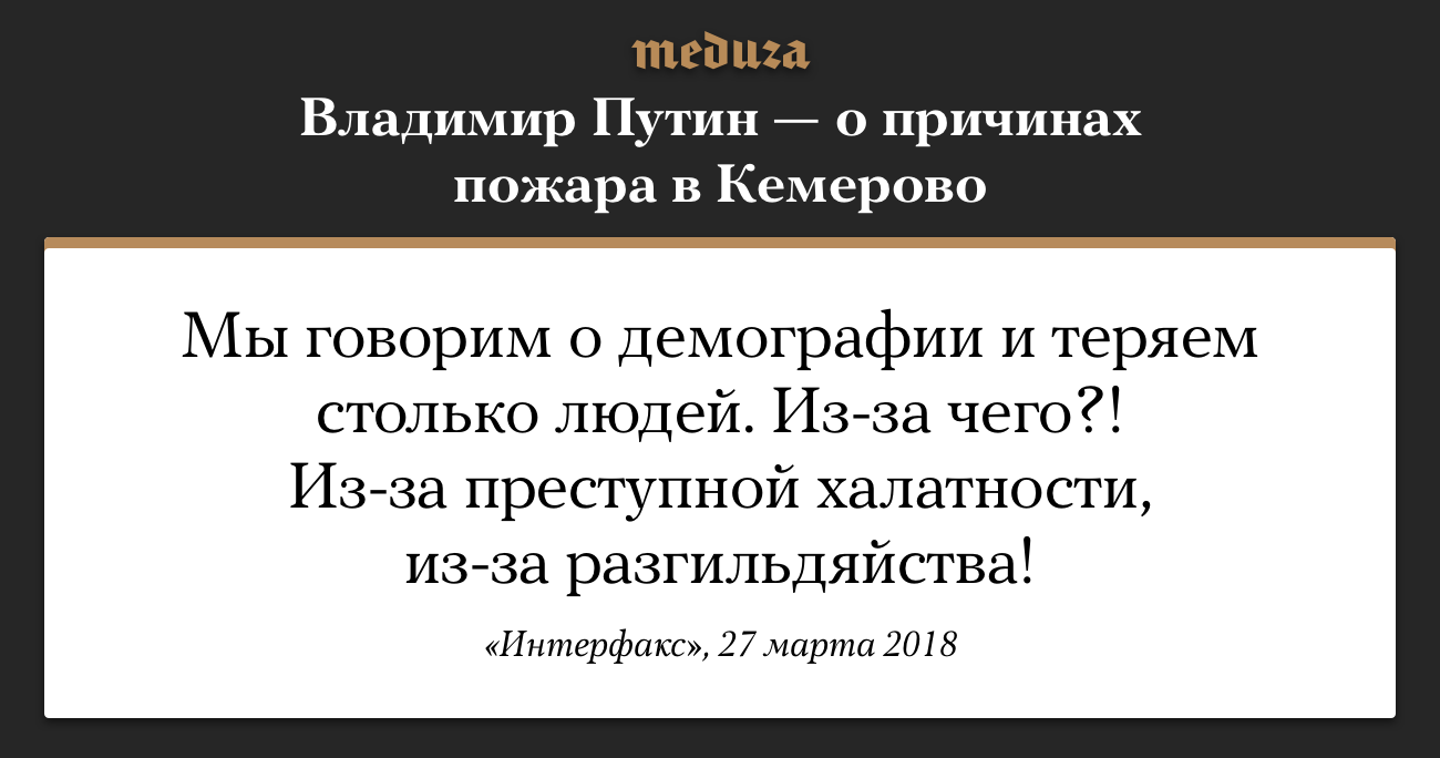 Владимир Путин — о причинах пожара в Кемерово, где погибли 64 человека. Цитата
