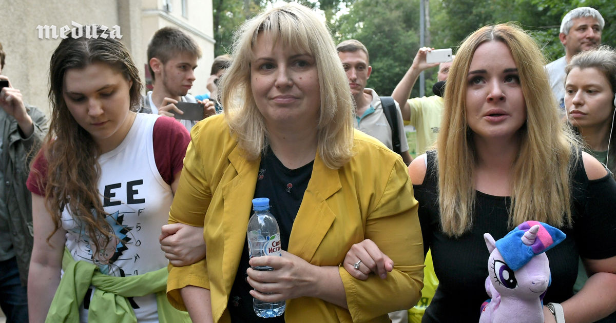 18-летняя фигурантка дела «Нового величия» Анна Павликова, ее мать Юлия и сестра Анастасия после заседания суда, на котором Анну Павликову освободили из СИЗО и перевели под домашний арест.