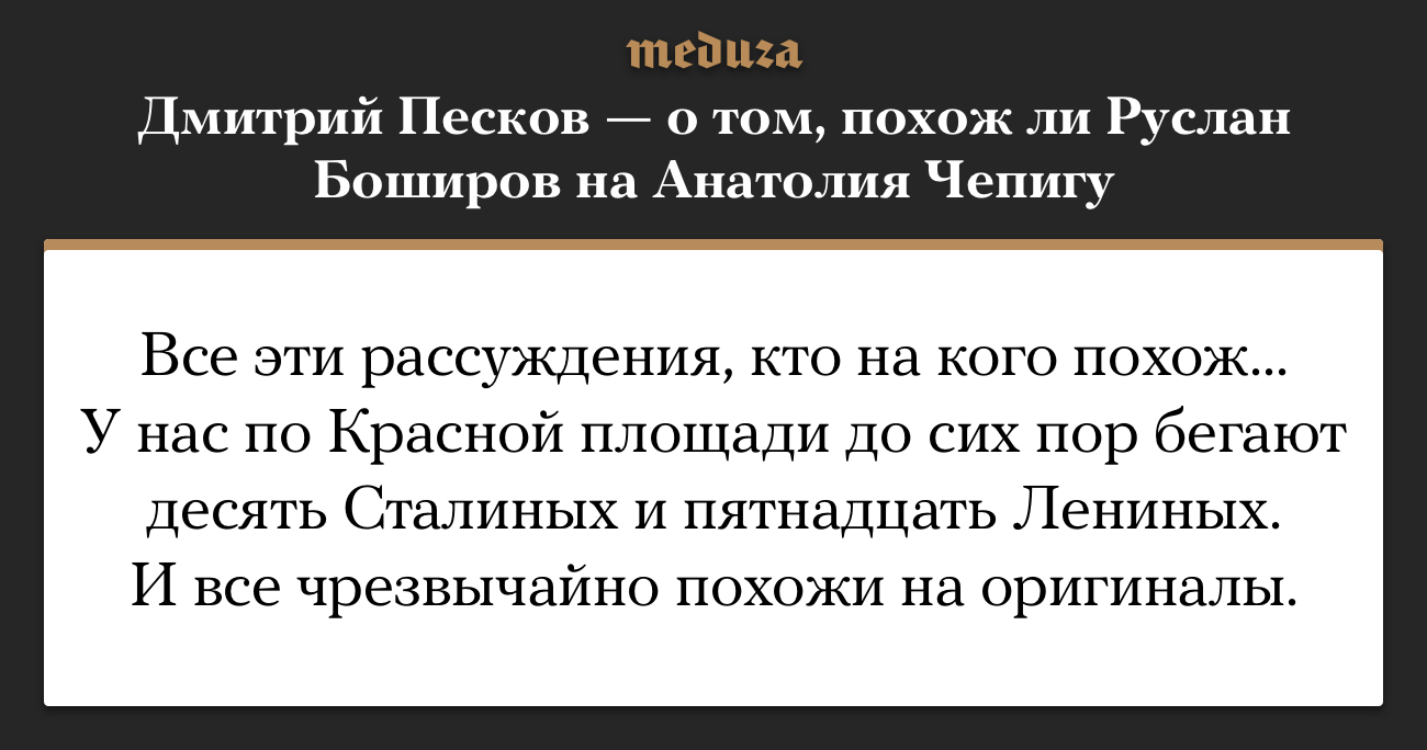 Дмитрий Песков — о схожести Руслана Боширова и Анатолия Чепиги. Цитата