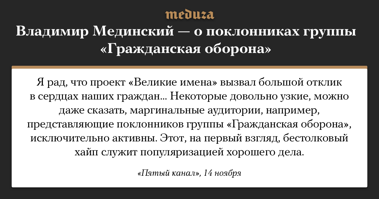 Владимир Мединский назвал поклонников Егора Летова маргиналами. Цитата