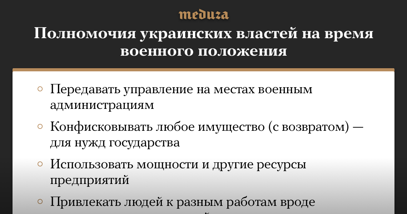 Конфискация имущества и комендантский час. Какие полномочия могут получить украинские власти на время военного положения?