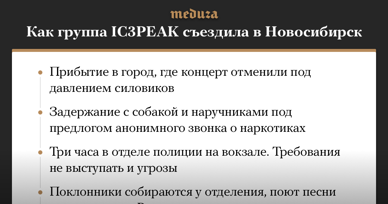 В конце 2018 года группа IC3PEAK, как и некоторые другие российские исполнители, столкнулась с противодействием при проведении тура по России: организаторы отказываются от проведения концертов под давлением силовиков, а самих музыкантов то и дело досматривает полиция. 1 декабря музыкантов задержали на вокзале в Новосибирске, где проведение концерта и так было под угрозой; затем полицейские пришли на выступление.