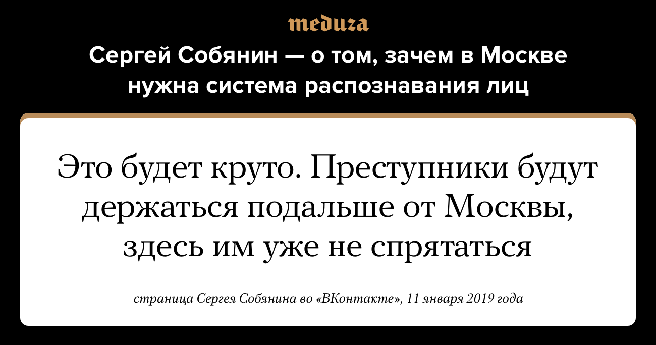 На улицах Москвы поставят камеры с системой распознавания лиц. Собянин объяснил, почему это будет круто