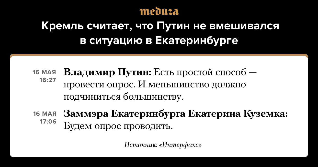 В Кремле считают, что президент не вмешивался в ситуацию в Екатеринбурге. Как это выглядит на практике
