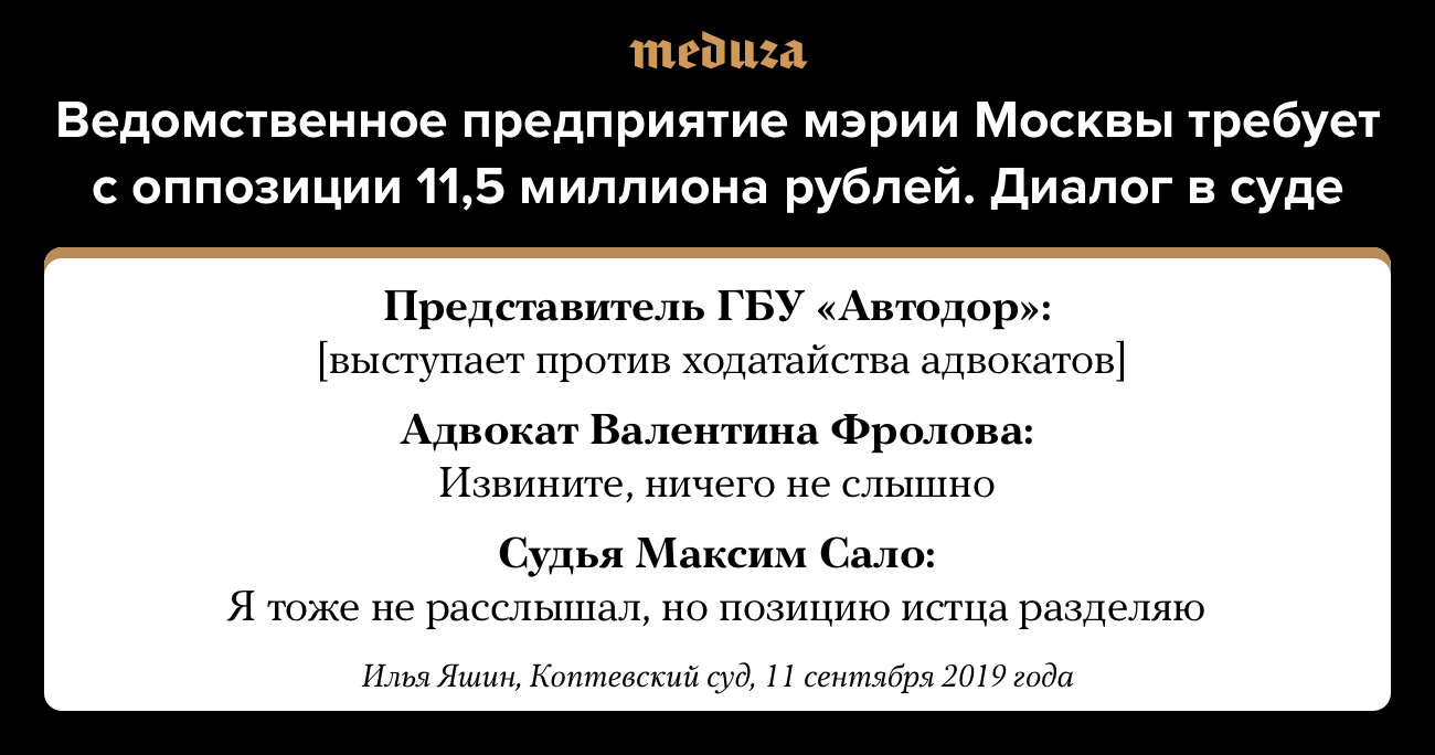 Ведомственное предприятие мэрии Москвы требует с оппозиции 11,5 миллиона рублей. Диалог в суде