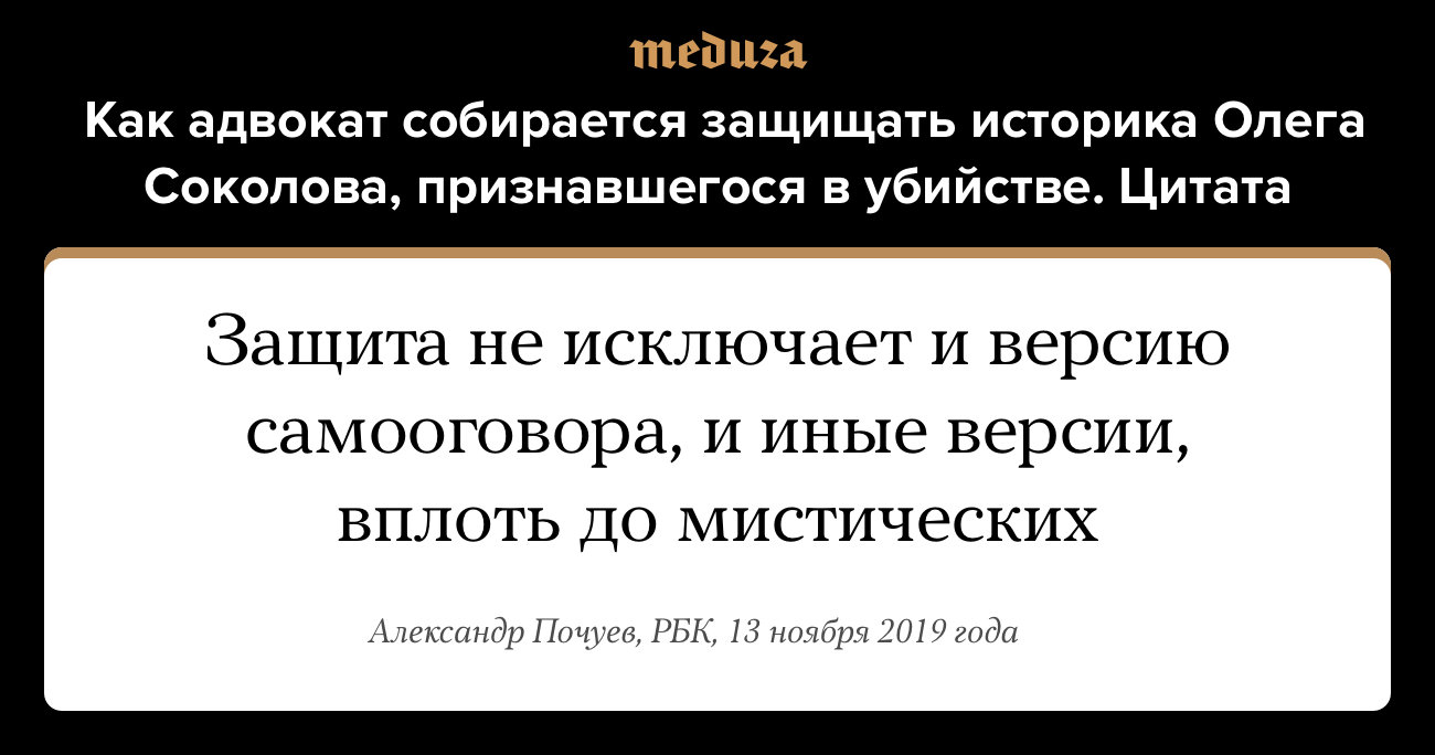 Как адвокат собирается защищать историка Олега Соколова, признавшегося в убийстве. Цитата