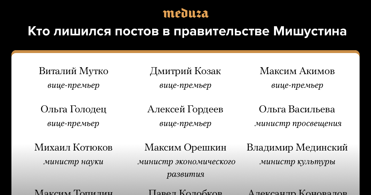 Правительство России обновилось наполовину. Вот список министров, потерявших свои посты