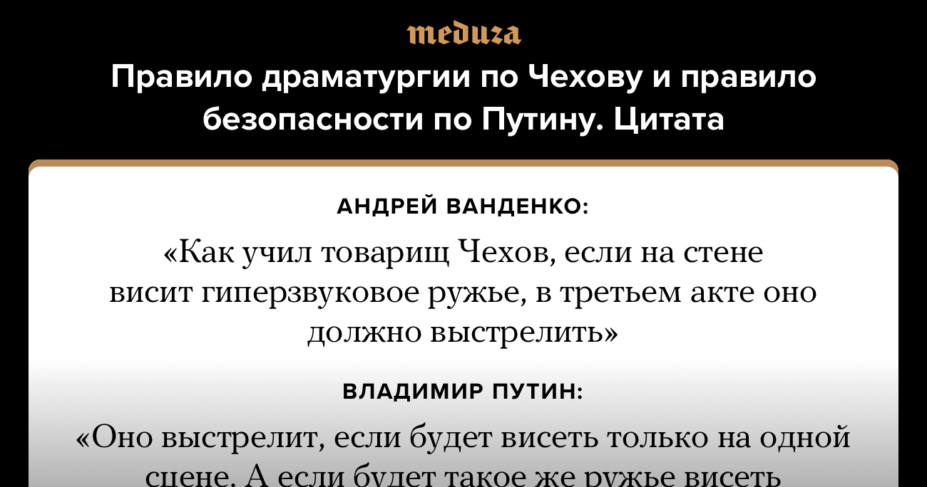 Правило драматургии по Чехову и правило безопасности по Путину. Цитата