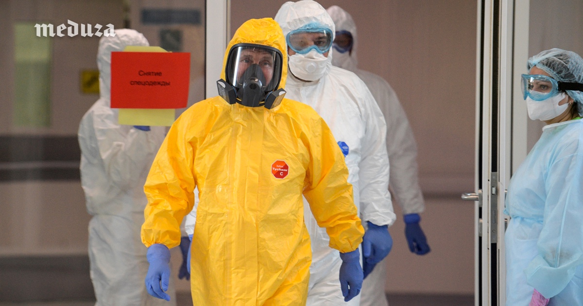 Президент РФ Владимир Путин (в центре в желтом защитном костюме) 24 марта посетил больницу в Коммунарке, куда госпитализируют пациентов с коронавирусом или подозрением на него.