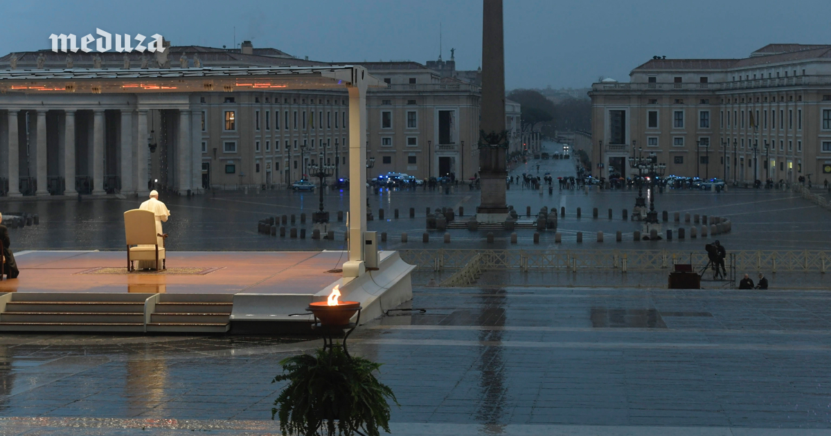 Папа римский Франциск 27 марта провел молебен об окончании пандемии коронавируса и провозгласил благословение «Граду и миру» (Urbi et Orbi), что обычно происходит только на Рождество и Пасху. Понтифик молился на пустой площади Святого Петра в Ватикане, которая закрыта с начала марта из-за пандемии. Обращение Франциска транслировалось на ютьюбе, фейсбуке, по телевидению и радио. Текст его молитвы можно прочитать на официальном сайте Ватикана.