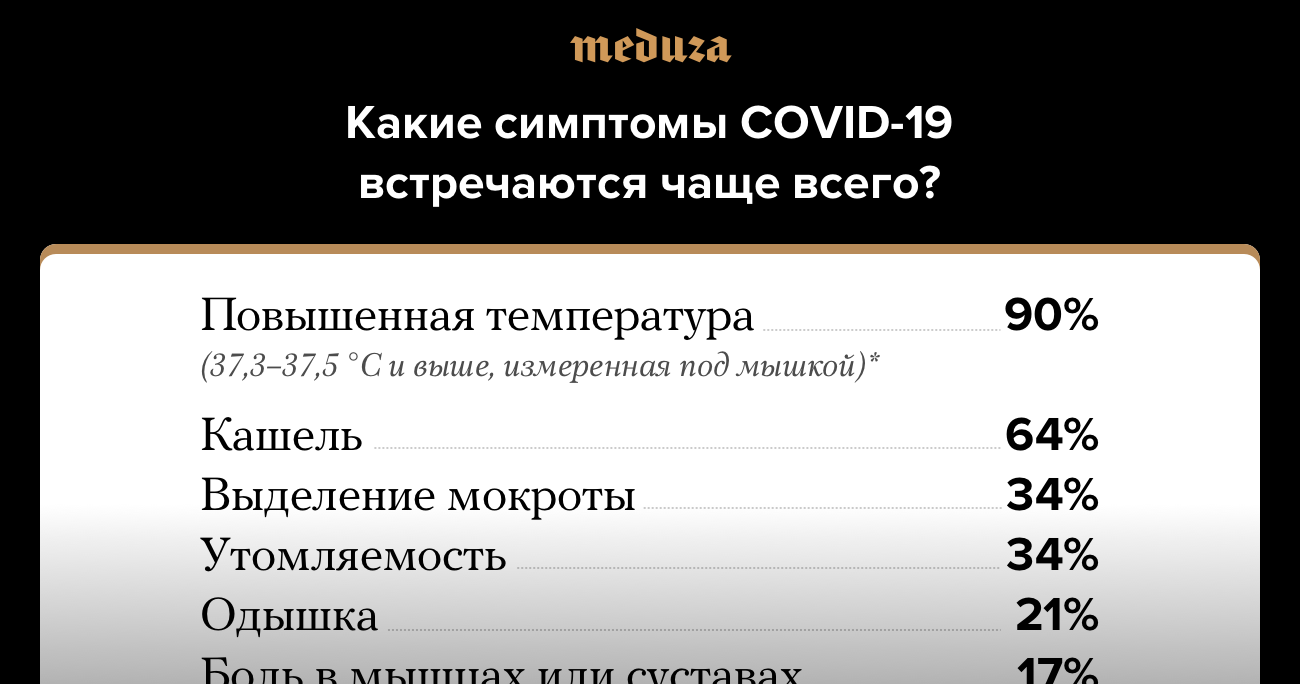 Какие симптомы при коронавирусной инфекции встречаются чаще всего? В одной картинке