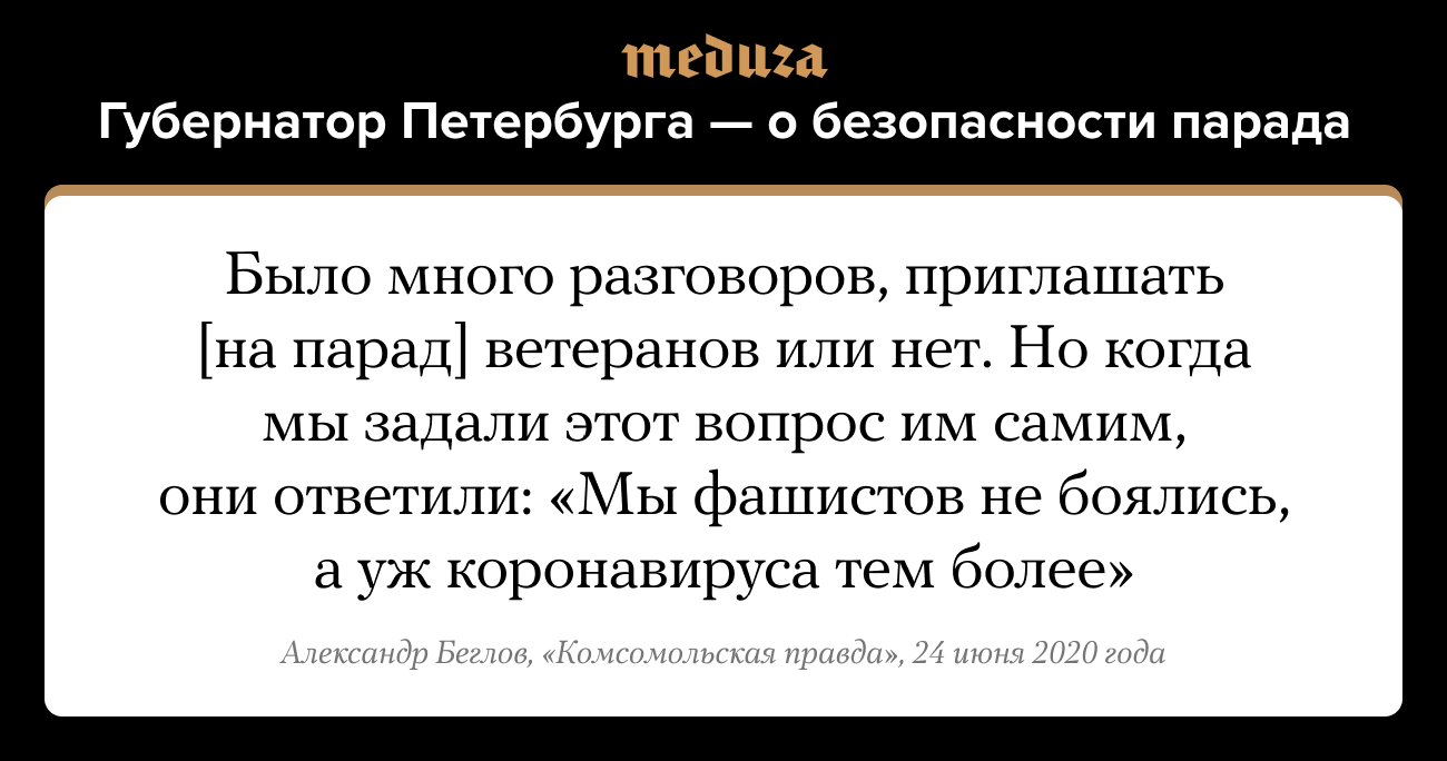 Почему ветераны пошли на парад Победы, несмотря на эпидемию? Отвечает губернатор Петербурга
