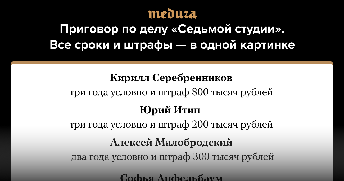 Приговор по делу «Седьмой студии». Все сроки и штрафы — в одной картинке