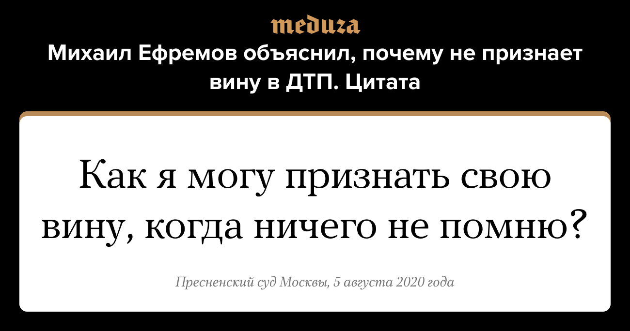 Михаил Ефремов объяснил, почему не признает вину в ДТП. Цитата