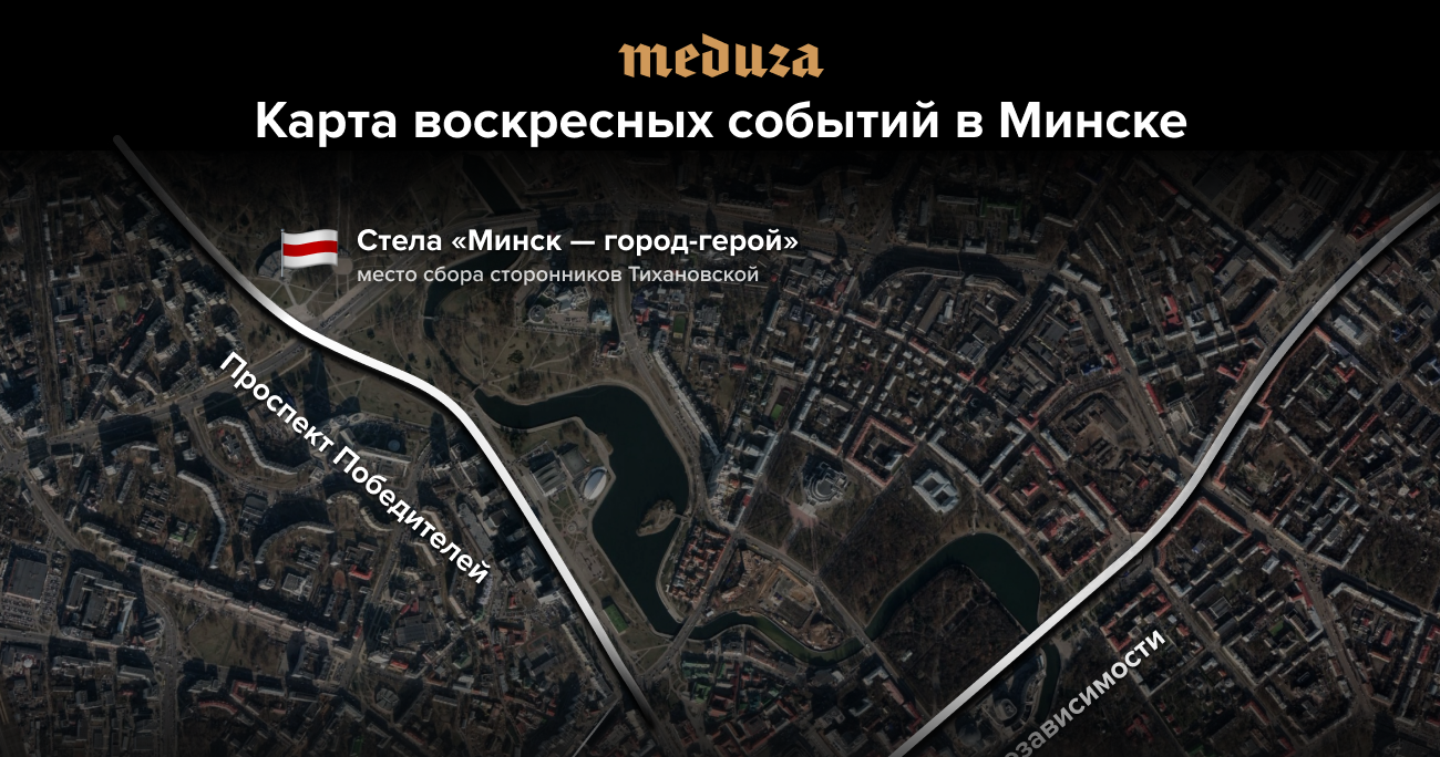 Где митинговали сторонники Лукашенко и проходил 200-тысячный «Марш свободы»? Карта воскресных событий в Минске