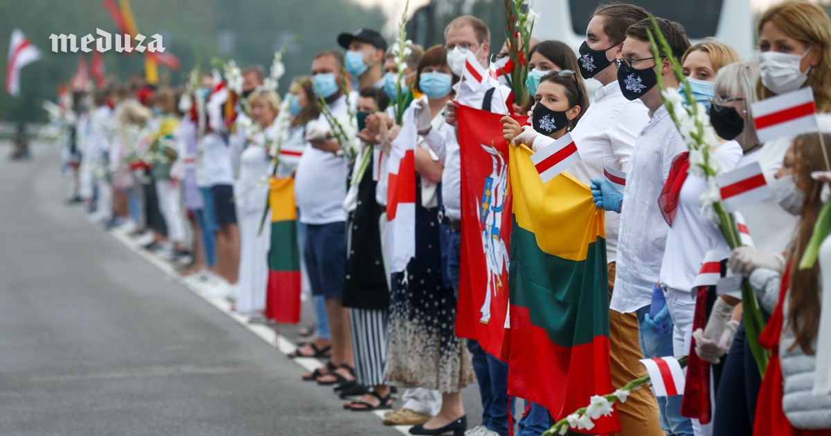 «Путь свободы» от Вильнюса до границы с Беларусью. Десятки тысяч людей встали в живую цепь в Литве, чтобы поддержать белорусский протест