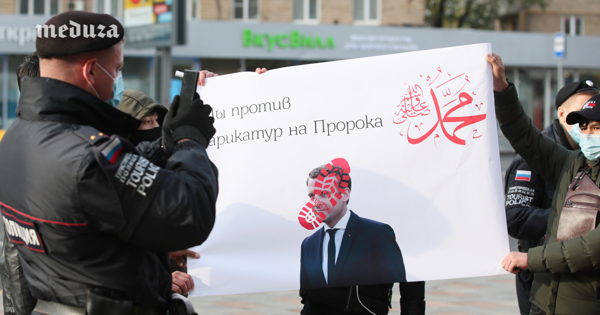 В Москве у посольства Франции 29 октября прошла акция протеста против карикатур на пророка Мухаммеда, который опубликовал журнал Charlie Hebdo. Сначала у посольства собрались несколько десятков человек. Как сообщал корреспондент РИА Новости, собравшиеся выкрикивали «Нет!» и искаженное имя президента Франции: «Макарон». После вмешательства сотрудников полиции, передал корреспондент «Интерфакса», протестующие организовали серию одиночных пикетов. О задержанных не сообщается. В ночь на 29 октября мусульмане начали празднование дня рождения пророка Мухаммеда, которое продлится месяц. 16 октября в пригороде Парижа выходец из России Абдулах Анзоров убил учителя Самюэля Пати. Мотивом преступления послужил тот факт, что Пати на занятии показывал ученикам карикатуры на пророка Мухаммеда.