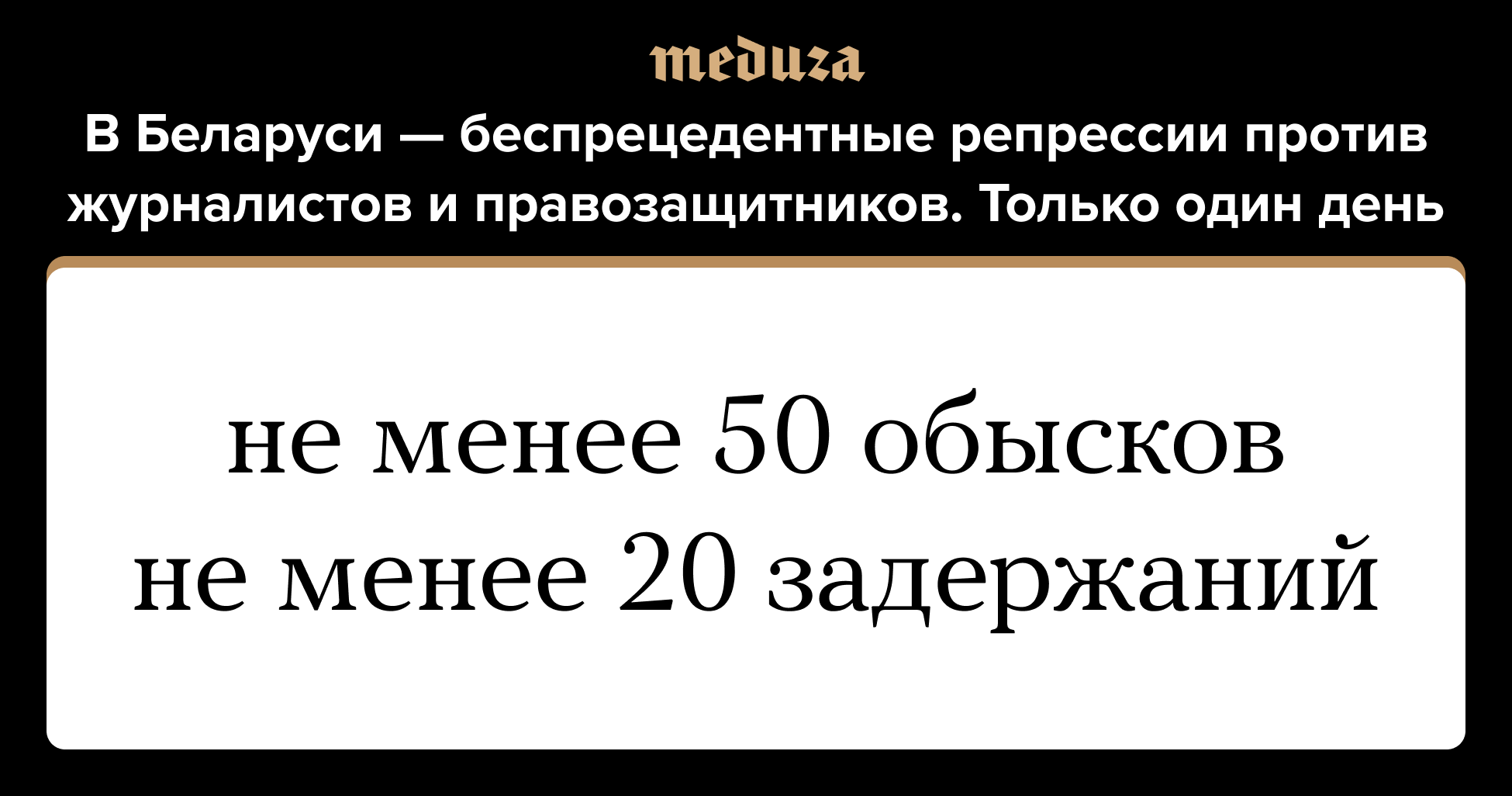 В Беларуси уже неделю продолжаются беспрецедентно массовые репрессии против журналистов и правозащитников. Все началось 8 июля, когда прошли обыски в независимом издании «Наша нива», был заблокирован его сайт и задержан ряд его сотрудников, включая главного редактора. В этот и на следующий день белорусские силовики пришли в несколько региональных негосударственных СМИ, обыскивали и допрашивали их журналистов. 14 июля многочисленные обыски и задержания прошли в правозащитных организациях и у связанных с ними людей. По данным белорусского правозащитного центра «Весна», за один день силовики провели не менее 51 обыска и не менее 20 задержаний (некоторых задержанных отпустили после допроса). В том числе были задержаны 11 членов самой «Весны». Задержанным журналистам и правозащитникам вменяют сразу ряд уголовных статей, включая статьи о массовых беспорядках и уклонении от уплаты налогов.