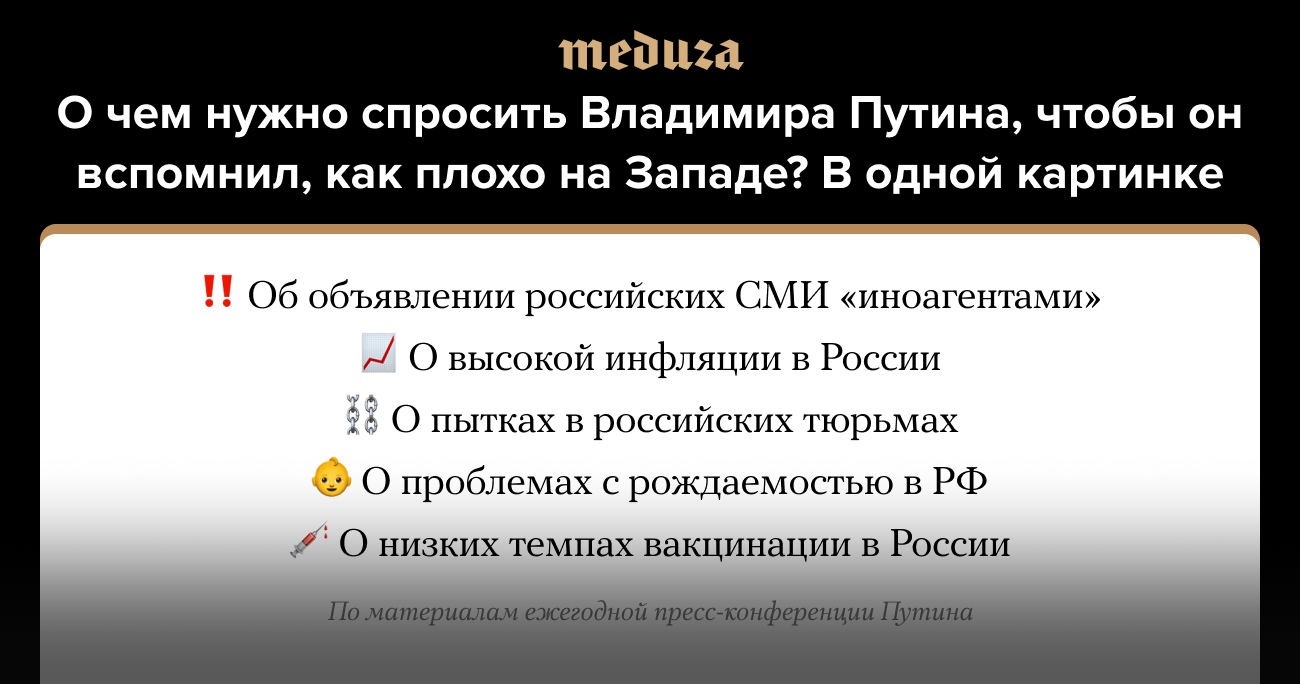 О чем нужно спросить Владимира Путина, чтобы он вспомнил, как плохо на Западе? В одной картинке
