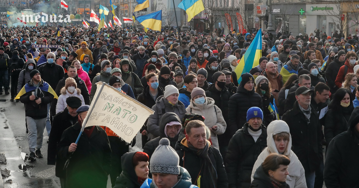 В Киеве 12 февраля прошел Марш единства, участники которого заявили о готовности объединиться в случае вторжения России в Украину (накануне США <a href="https://open-mind-network.online/feature/2022/02/12/ssha-dopustili-chto-rossiya-mozhet-napast-na-ukrainu-v-blizhayshie-dni-anglosaksam-nuzhna-voyna-lyuboy-tsenoy-otvetil-mid-rf" rel="noopener noreferrer" target="_blank">допустили</a>, что оно может произойти «в любой момент», хотя Россия планы военной агрессии против Украины отрицает). По оценкам украинских СМИ, в марше приняли участие от <a href="https://www.pravda.com.ua/rus/news/2022/02/12/7323759/" rel="noopener noreferrer" target="_blank">тысячи</a> до <a href="https://hromadske.ua/ru/posts/tysyachi-lyudej-v-kieve-vyshli-na-marsh-edinstva" rel="noopener noreferrer" target="_blank">нескольких тысяч</a> человек. Как <a href="https://hromadske.ua/ru/posts/tysyachi-lyudej-v-kieve-vyshli-na-marsh-edinstva" rel="noopener noreferrer" target="_blank">сообщил</a> телеканал «Громадське», марш организовали правые организации, но к нему присоединились различные активисты и политики. У них в руках были украинские государственные флаги, флаги националистических организаций, плакаты с такими <a href="https://nv.ua/kyiv/marsh-edinstva-za-ukrainu-proshel-v-kieve-video-novosti-kieva-50216125.html" rel="noopener noreferrer" target="_blank">надписями</a> как «Say no to Putin» и «Украина будет сопротивляться!». Группа участников марша также развернула бело-красно-белые флаги, которые являются символом белорусской оппозиции. Акция завершилась мирно, <a href="https://www.ukrinform.ru/rubric-kyiv/3402776-v-kieve-aktivisty-vysli-na-mars-protiv-rossijskoj-agressii.html" rel="noopener noreferrer" target="_blank">сообщило</a> агентство «Укринформ».