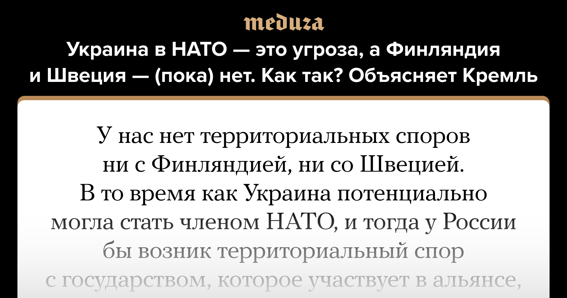 Украина в НАТО — это угроза, а Финляндия и Швеция — (пока) нет. Как так? Объясняет Кремль