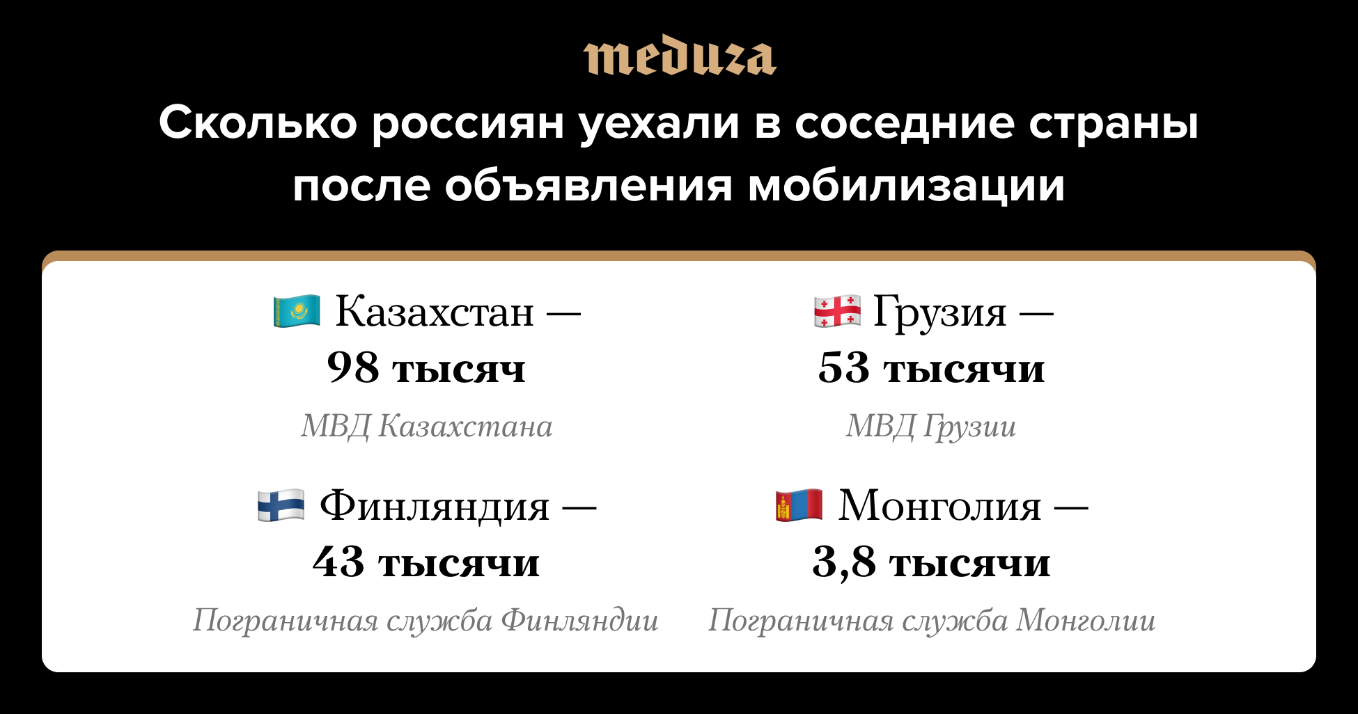 Сколько россиян уехали в соседние страны после объявления мобилизации. В одной картинке