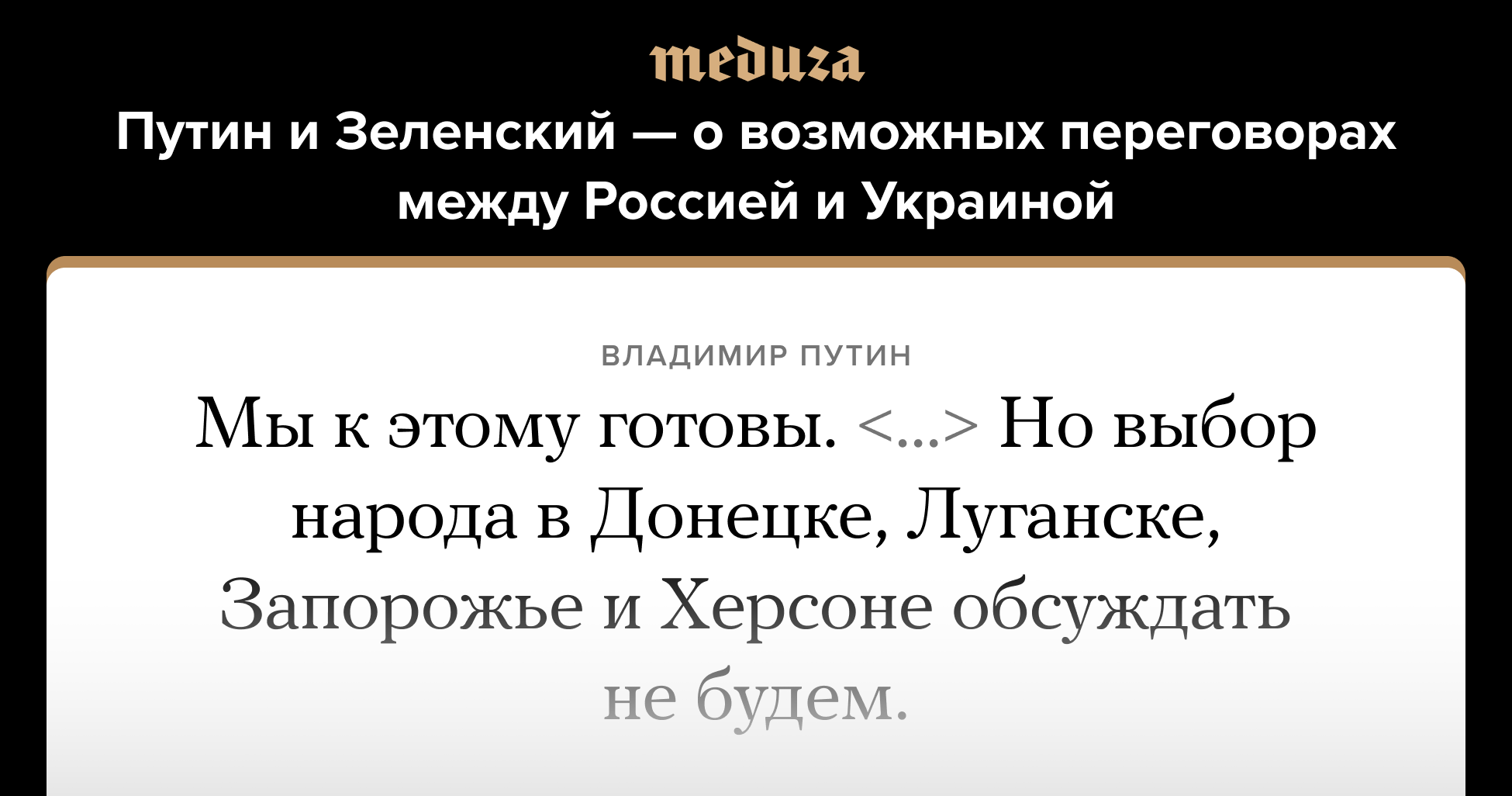 Президент России Владимир Путин 30 сентября после подписания договоров о «присоединении» к России оккупированных частей Запорожской и Херсонской областей, а также самопровозглашенных ДНР и ЛНР заявил, что Москва готова к переговорам с Киевом, но возврат территорий обсуждать не будет. Президент Украины Владимир Зеленский в своем обращении после этого сказал, что Украина тоже готова к диалогу с РФ — но не с Путиным.