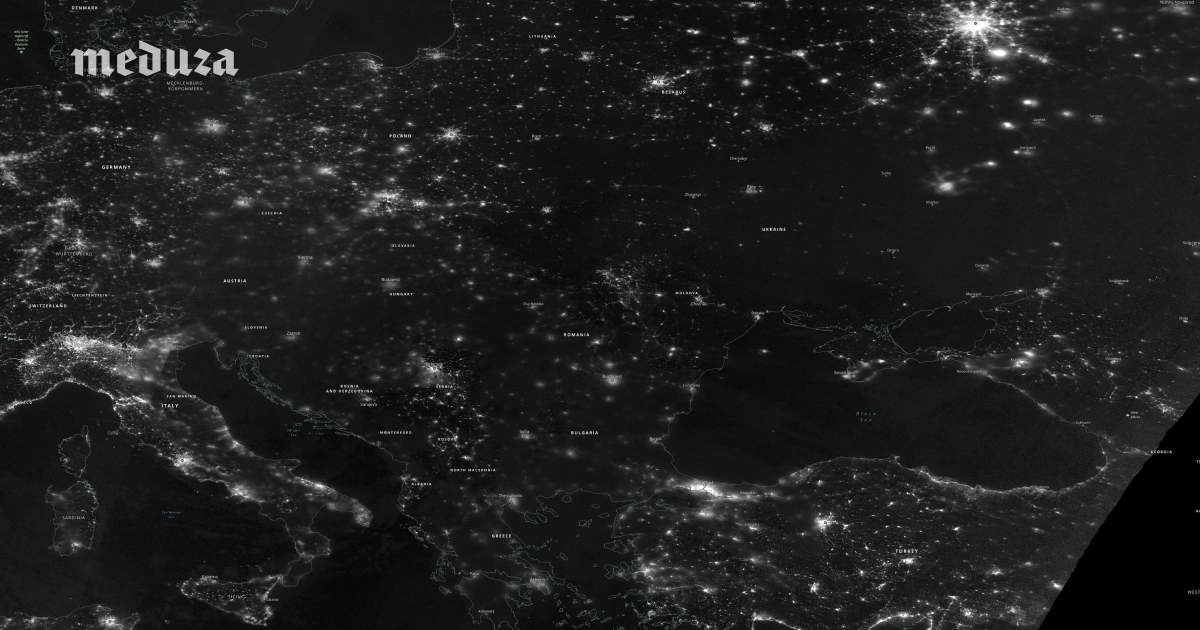Российские войска 23 ноября нанесли массированный удар по объектам энергетики Украины, из-за чего по всей стране начались аварийные отключения электроэнергии, а Киевская, Одесская и Черниговская области оказались полностью обесточены. На спутниковом снимке Европы, сделанном 23 ноября, отчетливо видно, что вся Украина (в правой части снимка) погрузилась во тьму. Для сравнения: посмотрите на Москву и Петербург в правом верхнем углу.