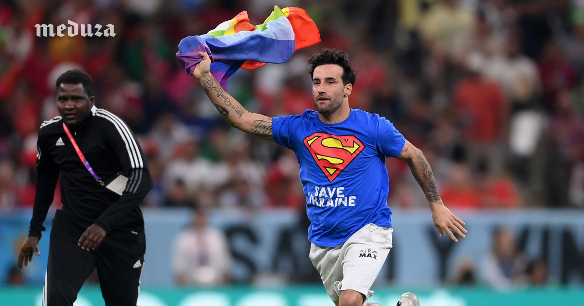 Вечером 28 ноября на чемпионате мира по футболу в Катаре матч в группе Н между Португалией и Уругваем в начале второго тайма ненадолго прервал выбежавший на поле болельщик. В руках у него был радужный пацифистский флаг (ранее на ЧМ пытались запрещать акции в поддержку ЛГБТ-людей), спереди на синей футболке — надпись «Спасите Украину» (Save Ukraine) с логотипом Супермена, а сзади — «Уважение к иранским женщинам» (Respect for Iranian Women). Комментатор российского телеканала «Матч ТВ» отреагировал на инцидент так: «Ой-ой-ой, мы не видим, мы не смотрим». Вскоре после того, как активиста увели с поля, футболисты Португалии открыли счет в матче (Итоговый счет игры 2:0 в пользу португальцев, оба гола на счету Бруну).