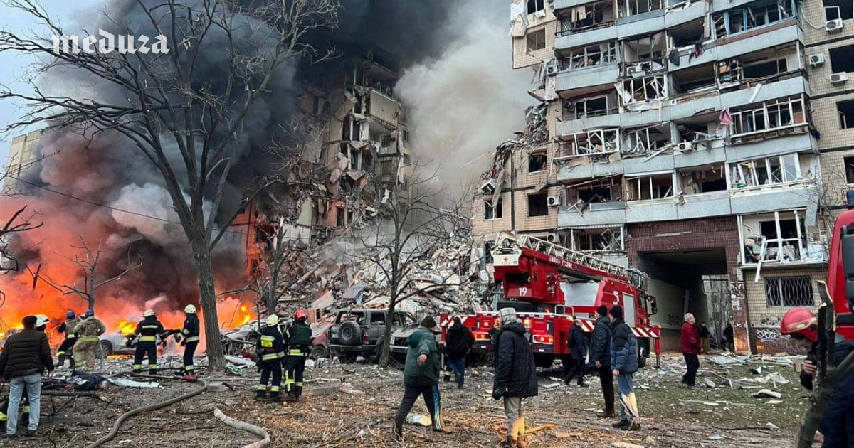 14 января территория Украины подверглась очередной ракетной атаке российской армии. В результате попадания ракеты в городе Днепр разрушен подъезд многоквартирного дома. По предварительным данным украинских властей, в результате погибли не менее пяти человек, почти 60 были ранены.