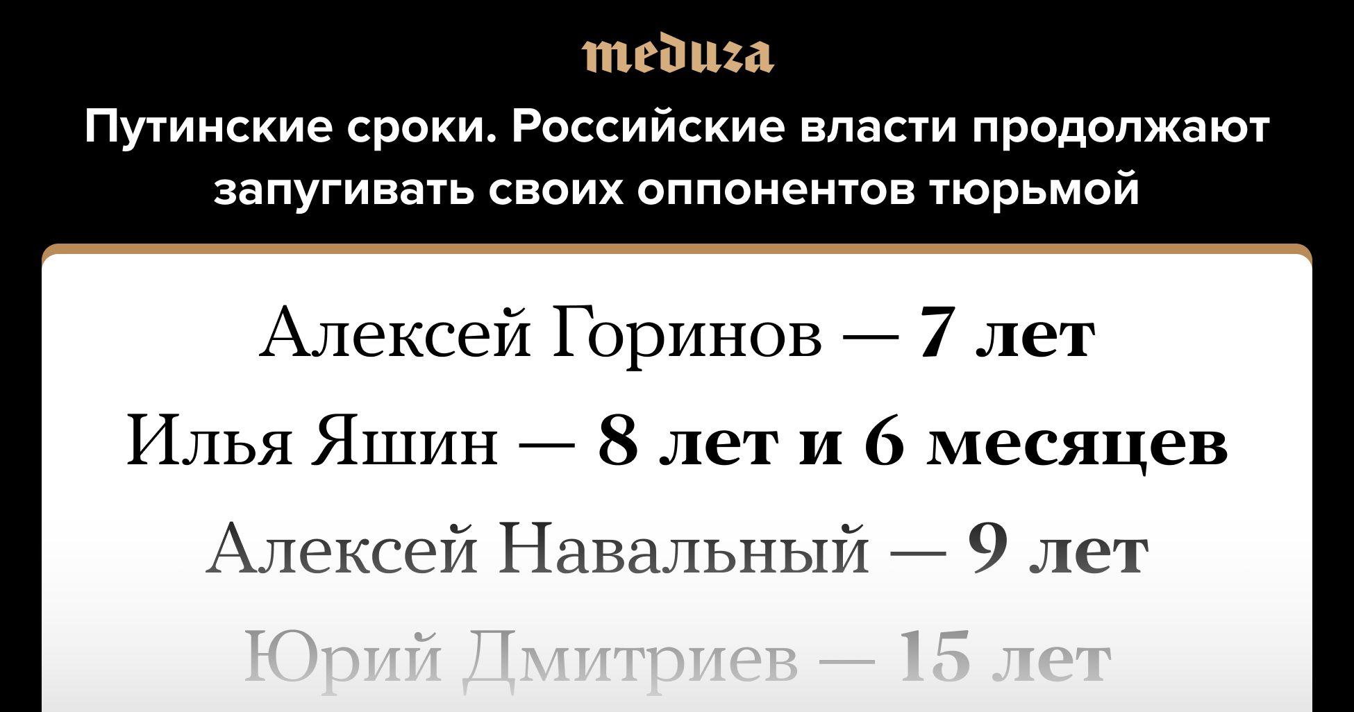 Путинские сроки: российские власти продолжают запугивать своих оппонентов тюрьмой — и система становится все более жестокой Вот только несколько примеров