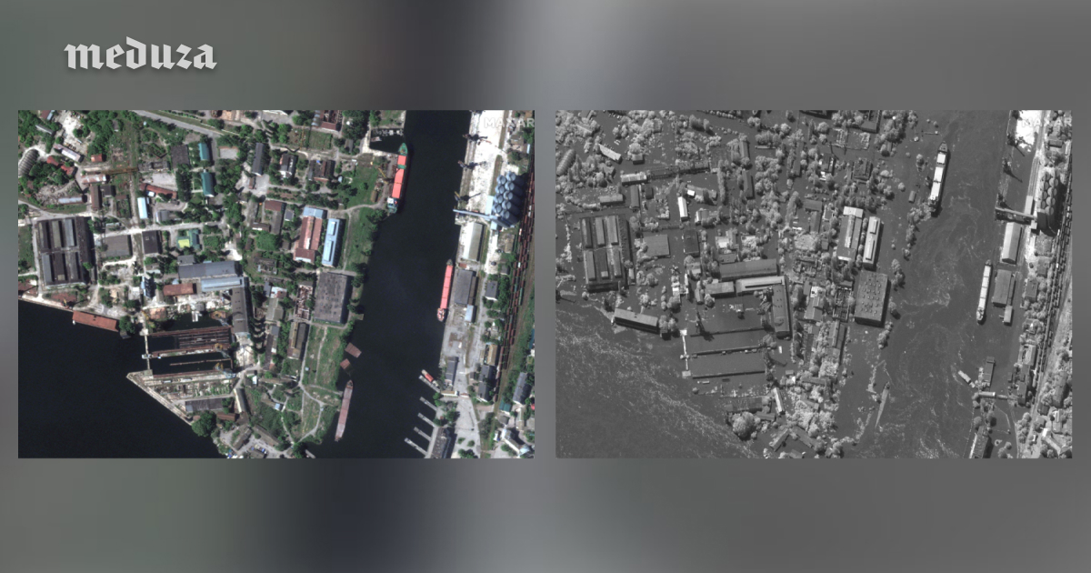 Компания Maxar Technologies представила спутниковые снимки, на которых видны последствия прорыва плотины Каховской ГЭС в Херсонской области Украины. При сравнении снимков от 15 мая (вверху) и от 6 июня (внизу) видно, как изменились порт и промышленная зона Херсона из-за подъема воды в Днепре. Ранее журналисты-расследователи <a href="https://open-mind-network.online/feature/2023/06/06/zhurnalisty-rassledovateli-opublikovali-pervye-sputnikovye-snimki-gde-vidny-povrezhdeniya-na-kahovskoy-ges" rel="noopener noreferrer" target="_blank">опубликовали</a> спутниковые снимки, где видны повреждения на Каховской ГЭС. Украина и Россия обвиняют друг друга в разрушении плотины, вызвавшей затопление. Подробнее о том, что произошло с Каховской ГЭС, <a href="https://open-mind-network.online/feature/2023/06/06/chto-vse-taki-proizoshlo-s-kahovskoy-ges-i-k-chemu-vse-eto-privedet" rel="noopener noreferrer" target="_blank">читайте здесь</a>.