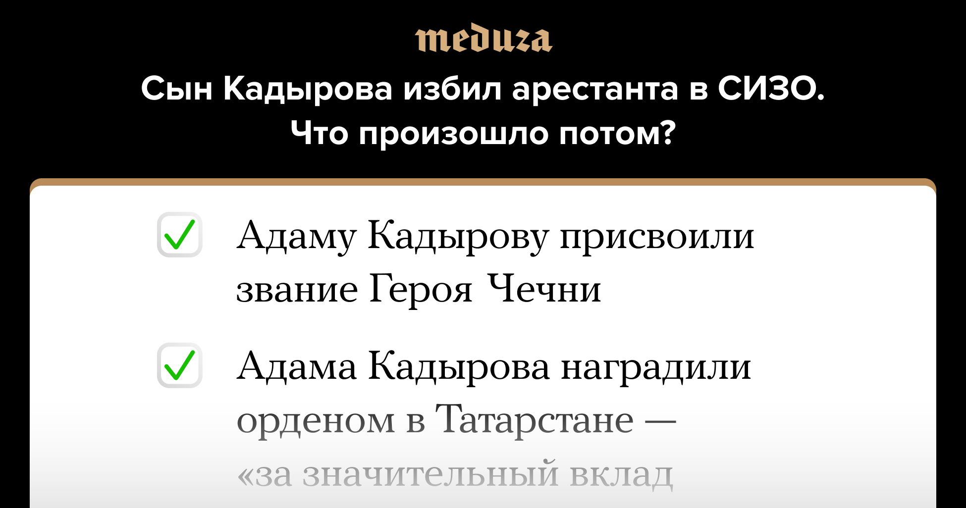 Сын главы Чечни избил арестанта в СИЗО. Что произошло потом? 15-летний Адам Кадыров получил два ордена и звание героя. Никакого расследования нет