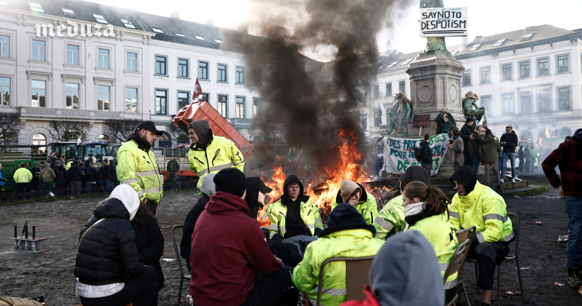 1 февраля бельгийские фермеры провели массовую протестную акцию в центре Брюсселя на площади Люксембурга рядом с Европейским парламентом, где проходит очередной саммит ЕС. Фермеры въехали в город на сотнях тракторов, перекрыв улицы в правительственном квартале. На центральной площади они разожгли костры и привезли груду навоза, а также повалили на землю скульптуру, являющуюся частью памятника 1872 года основателю бельгийской металлургии Джону Коккерилю. Фермеры принялись забрасывать яйцами и камнями близлежащие здания и сотрудников полиции. В ответ против них применили водометы. Протесты фермеров продолжаются по всей Европе: они требуют снижения налогов, увеличения субсидий и защиты от иностранной конкуренции.