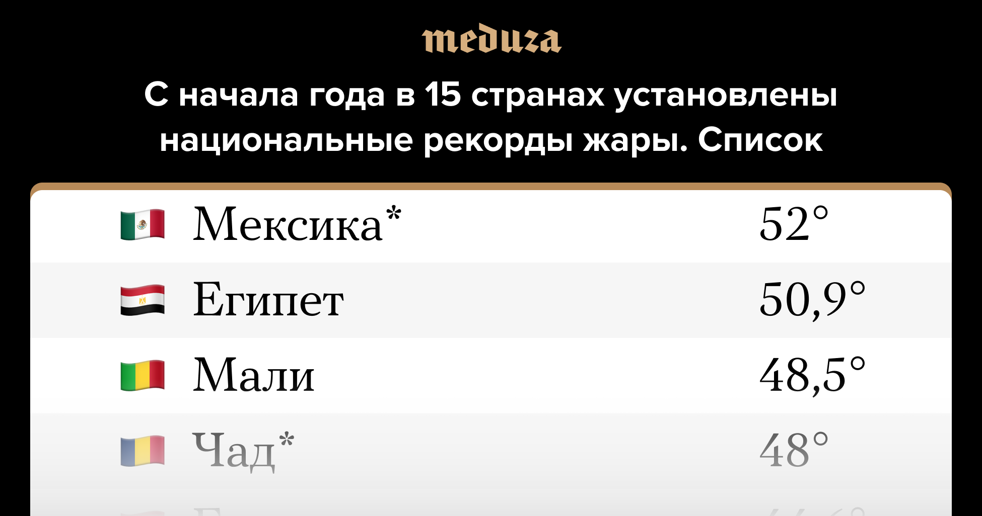 С начала года в 15 странах — рекордная жара. В Мексике было плюс 52 градуса, в Египте — плюс 51